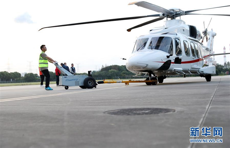10月20日,參加進博會展出的意大利萊奧納多直升機公司AW189型直升機降落在上海高東直升機常新華社記者 方喆 攝