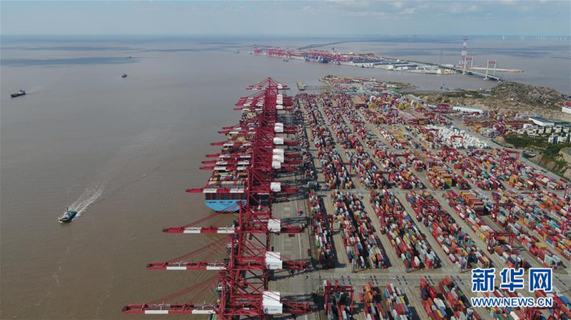 這是無人機拍攝的上海洋山港集裝箱碼頭(11月1日攝)。新華社記者 丁汀 攝