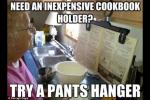 當(dāng)你做飯時(shí)總舉著食譜可不方便,但你還沒有一個(gè)食譜夾,那么帶著夾子的衣架可以派上用場,你還可以把它掛在廚房柜的把手上。 當(dāng)我們忙碌……