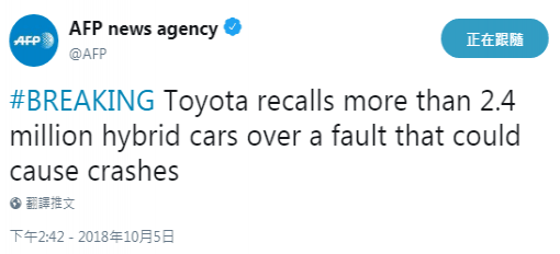 【環(huán)球網(wǎng)報道 記者 崔舒飛 張飛揚】據(jù)法新社5日最新消息,因發(fā)現(xiàn)存在可導(dǎo)致車禍的錯誤,豐田汽車公司召回超過240萬輛混合動力車。 據(jù)路透社報道,此次召回包括……
