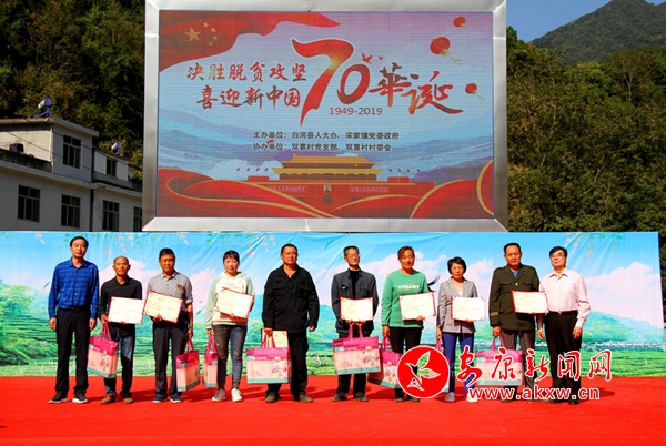 活動(dòng)現(xiàn)場(chǎng),十堰市中醫(yī)醫(yī)院向雙喜村貧困大學(xué)生捐贈(zèng)了助學(xué)金;播放了倉(cāng)上鎮(zhèn)裴家村貧困群眾柯昌全、冷水鎮(zhèn)三院村貧困群眾巴文成的脫貧事跡;表彰了雙喜村愛崗敬業(yè)、孝老愛親模范,脫貧致富、產(chǎn)業(yè)發(fā)展、環(huán)境衛(wèi)生標(biāo)兵;圍繞脫貧攻堅(jiān)、掃黑除惡專項(xiàng)斗爭(zhēng),開展了有獎(jiǎng)知識(shí)競(jìng)答。