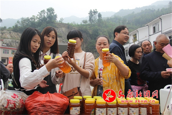 據(jù)悉,此次豐收節(jié)活動(dòng)以“文旅消費(fèi)助扶貧”為主題,共在東坡村文化中心廣場設(shè)置“山貨”及農(nóng)產(chǎn)品售賣展位近百個(gè)。據(jù)不完全統(tǒng)計(jì),活動(dòng)現(xiàn)場累計(jì)售出蜂蜜、酒、獼猴桃、菜籽油、干竹筍等“山貨”4000余斤,共計(jì)10萬余元。