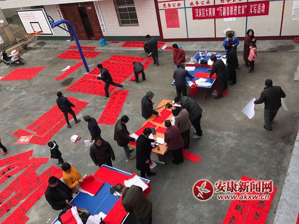 安康新聞網(wǎng)訊(通訊員 劉瀟 楊峰)1月8日,大同鎮(zhèn)陳家營(yíng)村熱鬧非凡。2017年“萬副春聯(lián)進(jìn)農(nóng)家”活動(dòng)在這里舉行,在寒冬臘月里為全鎮(zhèn)人民帶來了濃濃暖意。春聯(lián)書寫臺(tái)前人頭攢動(dòng),前來免費(fèi)領(lǐng)取春聯(lián)的群眾絡(luò)繹不絕,書法家們揮毫潑墨,現(xiàn)場(chǎng)群眾紛紛拿起手機(jī)拍照留念。一幅幅大紅的春聯(lián),傳遞著新春的吉祥,寄托著對(duì)新年的祝福。