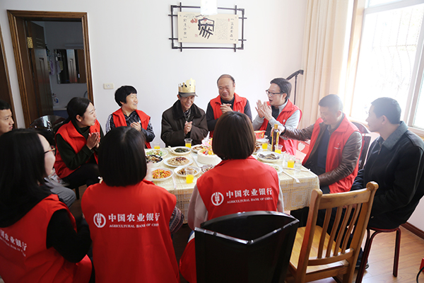 生日當(dāng)天,漢濱農(nóng)行副行長董曉春代表領(lǐng)導(dǎo)班子攜部分青年員工,帶著對空巢老人的濃濃關(guān)愛和厚重的生日禮物,來到我的住室,陪我度過了一個(gè)頗具特殊社會(huì)意義的生日。幾位領(lǐng)導(dǎo)同我聊天,向我噓寒問暖。青年人給我洗衣拖地,替我做飯。一時(shí)間,住室里如春風(fēng)柔沐,暖日曛曛,彌揚(yáng)著濃濃的溫暖和愛意,給一個(gè)老人心里注入了非比一般的欣慰,驅(qū)盡了獨(dú)居生活的寂寞。他們的愛心給我送來一次最為幸福的生命享受。