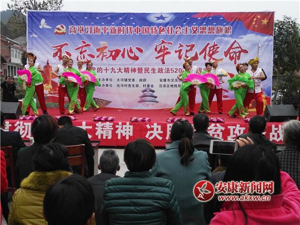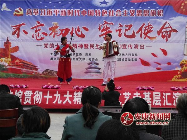 安康新聞網(wǎng)訊(通訊員 潘德安)為進(jìn)一步學(xué)習(xí)貫徹宣傳黨的十九大精神,把思想和行動盡快統(tǒng)一到大會精神上來,以習(xí)近平新時代中國特色社會主義思想武裝頭腦,高標(biāo)準(zhǔn)、嚴(yán)要求、強(qiáng)責(zé)任、實舉措決勝脫貧攻堅戰(zhàn),11月16日,大河鎮(zhèn)文化站邀請安康漢韻知青藝術(shù)團(tuán)為大河鎮(zhèn)伍河村開展“學(xué)習(xí)貫徹黨的十九大精神,決勝脫貧攻堅戰(zhàn)”主題文藝演出活動。