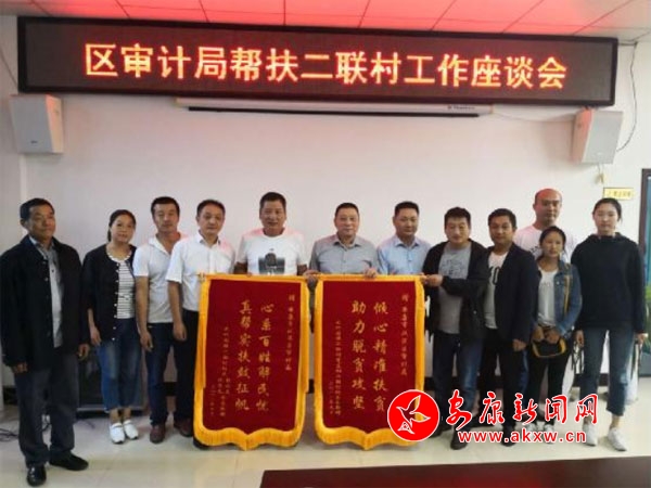 安康新聞網(wǎng)訊(通訊員 陳澤榮)9月14日上午,區(qū)審計(jì)局迎來了一批特殊的客人——漢濱區(qū)大竹園鎮(zhèn)人大主席余尚坤、二聯(lián)村“兩委”班子主要負(fù)責(zé)人和部分村民代表,他們冒雨前行,代表村委會和當(dāng)?shù)刎毨罕,送來了兩面印?ldquo;傾心精準(zhǔn)扶貧 助力脫貧攻堅(jiān)”和“心系百姓解民憂 真幫實(shí)扶鼓征帆”的錦旗,衷心感謝區(qū)審計(jì)局3年來在精準(zhǔn)扶貧工作中對二聯(lián)村和二聯(lián)村全體貧困戶的大力幫扶。