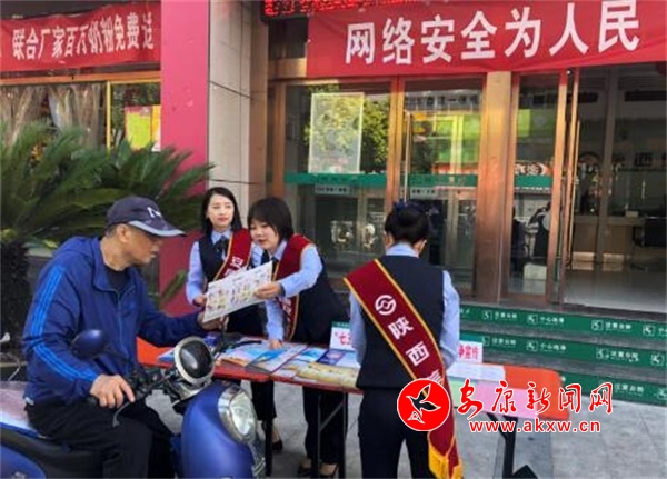 安康新聞網(wǎng)訊 為增強(qiáng)全民網(wǎng)絡(luò)安全意識(shí),營(yíng)造安全健康文明的網(wǎng)絡(luò)環(huán)境,漢濱區(qū)組織轄區(qū)內(nèi)銀行開(kāi)展了“網(wǎng)絡(luò)安全為人民,網(wǎng)絡(luò)安全靠人民”為主題的宣傳服務(wù)周活動(dòng)。