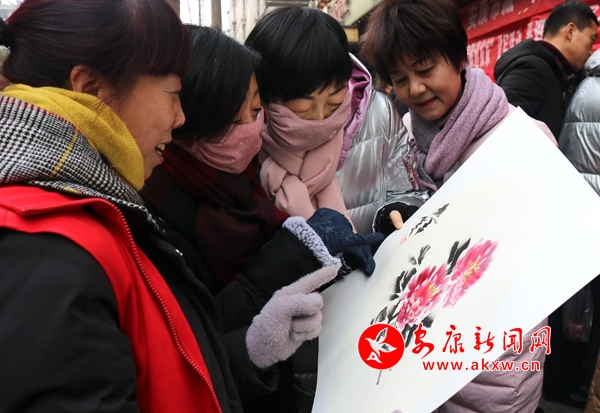 “很高興到鼓樓社區(qū)寫春聯(lián)、送祝福。”張思成點(diǎn)贊鼓樓社區(qū)充滿愛心、重視文化,提供很好的平臺(tái)讓書法家和居民一起交流學(xué)習(xí),營(yíng)造濃濃的春節(jié)民俗氛圍,F(xiàn)場(chǎng)不僅有著名的書法家,著名的畫家也為活動(dòng)增添色彩,“寒香臘梅”圖、“花開富貴”圖、“事事如意”圖、“節(jié)節(jié)高升”圖等顏色艷麗、生動(dòng)活潑,美好的寓意是送給居民最溫暖的祝福。