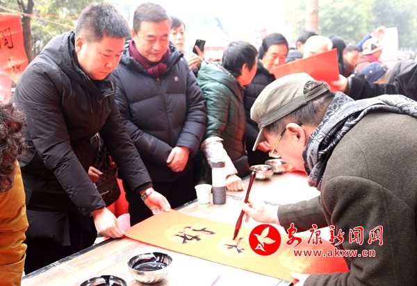 活動(dòng)現(xiàn)場(chǎng),八位著名書法家手持毛筆,嫻熟轉(zhuǎn)動(dòng)手腕, 安康日?qǐng)?bào)社張思成社長(zhǎng)剛把紅紙鋪開就被居民里三層外三層圍了起來,頃刻間,一副洋溢節(jié)日喜慶的“春臨大地百花艷 福至靈芝萬象新”春聯(lián)就寫好了。捧著稱心滿意的春聯(lián),劉先生連聲道謝。