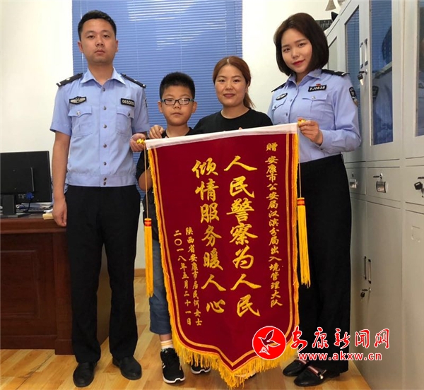 2018年5月21日上午十點多,恒口示范區(qū)高儉村居民何女士將一面寫著“人民警察為人民,傾情服務暖人心”的錦旗送到出入境管理大隊,對大隊民警熱情周到的服務表示感謝。
