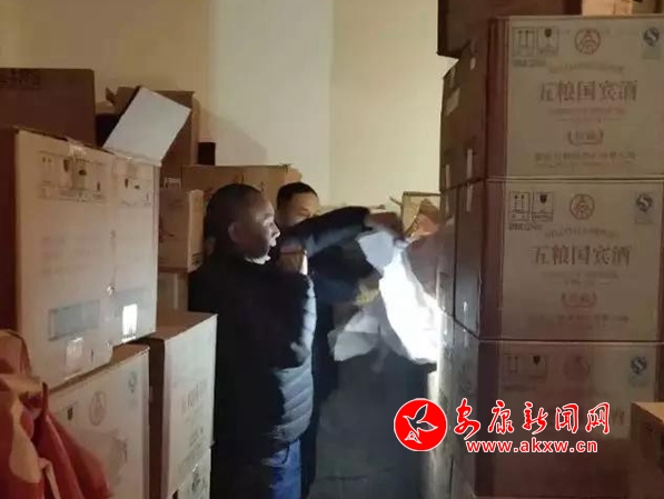 2019年1月26日,該分局環(huán)食藥偵查大隊(duì)根據(jù)線索,對城區(qū)巴山路某煙酒商行進(jìn)行突擊檢查,現(xiàn)場查獲一批涉嫌假冒名酒,并在該商行另一倉庫內(nèi)發(fā)現(xiàn)儲存的大量茅臺、五糧液、國窖、西鳳等名貴假酒。隨后,民警又通過犯罪嫌疑人的手機(jī),順藤摸瓜發(fā)現(xiàn)這家煙酒商行在城東位置的另一個庫房,內(nèi)藏大量的各類名貴假酒,貨值近40萬元。