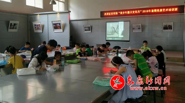 本網(wǎng)訊 (通訊員 惠星)俗話說(shuō)“天不怕地不怕,就怕熊孩子放暑假!”,轉(zhuǎn)眼之間,一年一度學(xué)生暑假又開始了,在近兩個(gè)月的假日里,如何讓孩子能夠度過(guò)一個(gè)充實(shí)的假期生活讓不少家長(zhǎng)犯了難。而與此同時(shí),漢濱區(qū)文化館與各鎮(zhèn)、辦分館已精心準(zhǔn)備,推出了“文化小康行動(dòng)”系列品牌文化惠民活動(dòng)——“青少年假日文化月”藝術(shù)免費(fèi)培訓(xùn),組織專業(yè)文化藝術(shù)工作者開展繪畫、書法、舞蹈、泥塑等豐富多彩的免費(fèi)藝術(shù)普及課程,讓青少年學(xué)生在假日里享受到優(yōu)質(zhì)的公共文化服務(wù)。