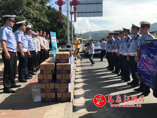 永成汽貿(mào)公司負(fù)責(zé)人表達(dá)了對高溫天氣下交警始終如一堅(jiān)守崗位、辛苦工作的崇高敬意,“連日來持續(xù)38度的高溫,我們切身感受到了炎炎酷暑的威力,交警們頭頂烈日,不怕辛苦,戰(zhàn)斗在第一線,他們以高度的責(zé)任感確保了廣大市民的安全出行。我們公司理所應(yīng)當(dāng)承擔(dān)社會責(zé)任,表達(dá)企業(yè)愛心,算是盡自己的微薄之力,表達(dá)自己的敬意和感激之情。”