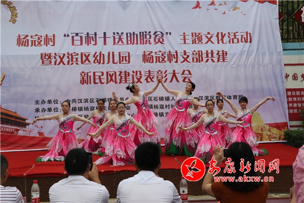 在熱鬧歡快的花鼓聲中,“好鄉(xiāng)賢”楊堯禮帶著孫子登臺(tái),用純樸的方言唱出了《掃黑除惡樹新風(fēng)》,贏得了在場群眾的陣陣掌聲;在村民自編自演的小品《摔碗》中,詼諧的語言和感人的情節(jié),感動(dòng)得臺(tái)下群眾眼泛淚花; 在漢濱區(qū)幼兒園老師們表演舞蹈的《一千零一個(gè)愿望》后活動(dòng)落下帷幕;顒(dòng)期間,愛心人士胡國財(cái)代表陜西省安康市中福工程有限公司為10名準(zhǔn)大學(xué)生捐贈(zèng)了每人2000元現(xiàn)金,漢濱區(qū)幼兒園也送上了特殊的關(guān)愛。