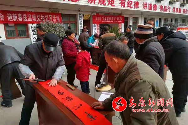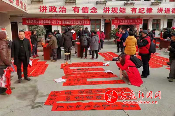 本網(wǎng)訊 (通訊員 胡德良)為迎接新春佳節(jié),營(yíng)造喜慶祥和的節(jié)日氛圍,1月16日,漢濱區(qū)早陽(yáng)鎮(zhèn)文化綜合服務(wù)站邀請(qǐng)安康老年大學(xué)攝影學(xué)會(huì)和書(shū)法學(xué)會(huì)在該鎮(zhèn)機(jī)關(guān)大院開(kāi)展“迎新春、送溫暖、義拍義寫(xiě)”活動(dòng),為山區(qū)群眾寫(xiě)春聯(lián)、拍攝全家福、送新春祝福,也拉開(kāi)了該鎮(zhèn)2020年文化、科技、衛(wèi)生“三下鄉(xiāng)”的大幕。