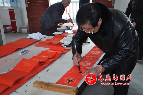 “這春聯(lián)還是手寫(xiě)的好,過(guò)年的氣氛一下就有了。”“文化站請(qǐng)的老師寫(xiě)的真好,貼到門(mén)上體面喜慶又吉祥,我還要請(qǐng)邱老師再給寫(xiě)幾副窗聯(lián)。”在場(chǎng)的群眾互相交流說(shuō)道。