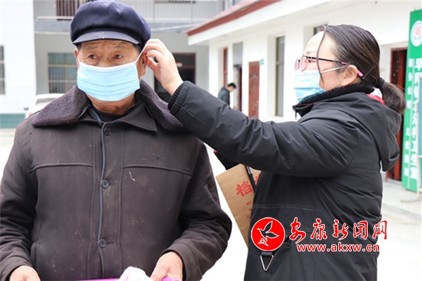 “謝謝你們?yōu)槲覀兯蛠?lái)了口罩,我自己去藥店問(wèn)了兩次都沒(méi)有買(mǎi)到口罩的,太謝謝你們了,作為一個(gè)獨(dú)生子女家庭,我深感榮幸。”臺(tái)竹村的獨(dú)生子女戶(hù)張甲地在接過(guò)防疫物品后,高興地說(shuō)。