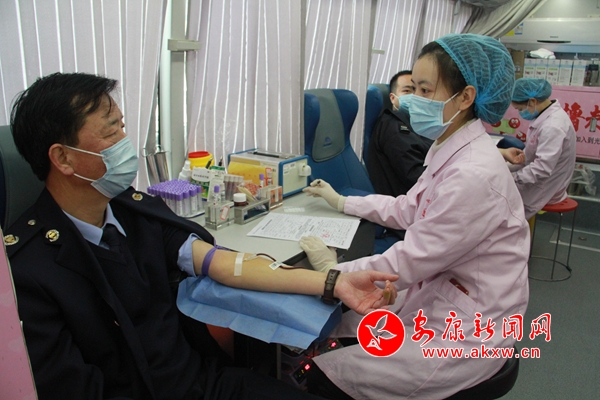 在全國上下抗擊新冠肺炎疫情的關(guān)鍵時刻,3月6日,漢濱區(qū)稅務(wù)局黨員干部積極響應(yīng)號召參加義務(wù)獻(xiàn)血活動。身體素質(zhì)健康良好的干部職工踴躍無償獻(xiàn)血,用實際行動支援抗擊疫情阻擊戰(zhàn),用溫暖愛心為抗疫前線的勇士傳遞奮戰(zhàn)力量。據(jù)統(tǒng)計,當(dāng)日累計獻(xiàn)血達(dá)10100毫升。(通訊員 陳榮斌 攝)ZQy安康新聞網(wǎng)