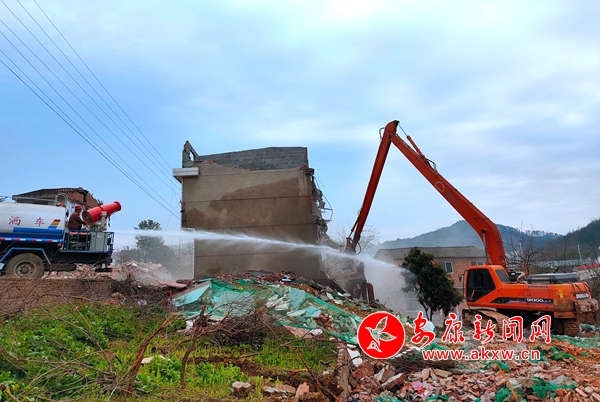 在木竹橋村五組房屋拆除現(xiàn)場(chǎng),工作人員清場(chǎng)后,周?chē)鹁渚,挖機(jī)揮舞著長(zhǎng)臂,灑水車(chē)噴灑除塵,工作人員分工配合,拆除現(xiàn)場(chǎng)井然有序,如火如荼。征收辦干部放棄休息時(shí)間,反復(fù)多次上門(mén)與拆遷戶商談,宣傳政策,簽訂協(xié)議,測(cè)量、核實(shí)面積,全力把受疫情影響的時(shí)間搶回來(lái)。