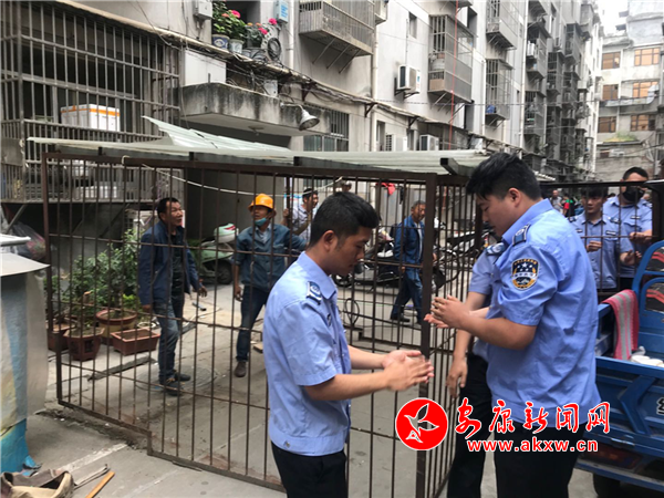 面對轄區(qū)的各種環(huán)境治理難題,鼓樓社區(qū)上下聯(lián)動,縱向請求支援,橫向詢求配合,聯(lián)合市住建局,環(huán)衛(wèi)所,老城創(chuàng)建辦、兩違辦,社區(qū)民警開展了一系列整治行動。開展整治行動之前,采取“打招呼、講政策”的方式告知居民群眾,針對“三堆六亂”問題,聯(lián)合環(huán)衛(wèi)所統(tǒng)一利用渣土車集中清理,針對小區(qū)私設(shè)“地樁”問題,口頭告知業(yè)主的同時,上報(bào)城管部門采取立即拆除措施。針對亂搭亂建問題,聯(lián)合老城創(chuàng)建辦、兩違辦限時拆除違章違建,針對下水管道口破損問題,采取填補(bǔ)硬化。