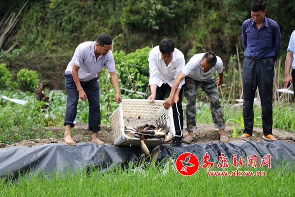 看到鄰村嘗到了甜頭,瓦房村今年也發(fā)展了52畝稻魚,并成立了瓦房村集體股份經(jīng)濟合作社,吸納18戶貧困戶加入。當(dāng)天,該村組織村民投放魚苗,并與公司簽訂了稻魚收購協(xié)議,預(yù)計第一批稻田生態(tài)魚10月份可以上市。
