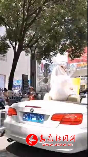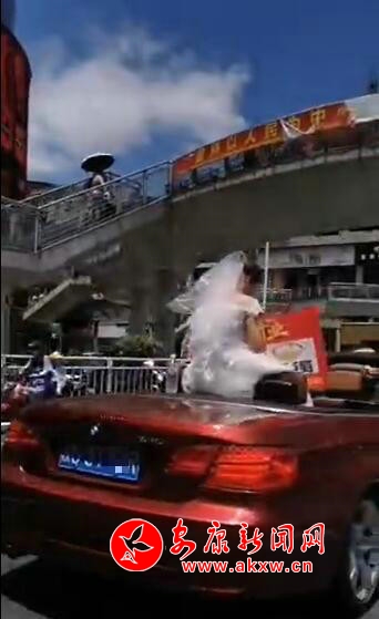 本網訊(通訊員 唐波)6月18日,漢濱公安分局交警大隊接到網友舉報稱:今天中午12點左右,在中心城區(qū)金州路有商家利用四輛敞篷轎車在道路上做巡游宣傳,車上的四位“新娘”均坐在后排中間部位,將身體伸出車外,存在妨礙安全駕駛的違法行為。