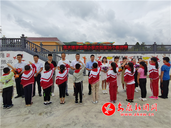本網(wǎng)訊(記者 毛明星)9月10日上午,藍天白云,風和日麗,在漢濱區(qū)流水鎮(zhèn)學(xué)坊埡小學(xué)的操場上,慶祝第36個教師節(jié)活動在雄壯的樂曲中開始了,一排整齊的學(xué)生將一速速鮮花上臺送給了教師的手中,表達了學(xué)生們對自己老師的敬畏,同時,今年建成的“學(xué)坊埡社區(qū)幼兒園”迎來的第一批學(xué)生也整齊地排坐在學(xué)校的操場上,使整個會場洋溢著團結(jié)奮進的氣氛。
