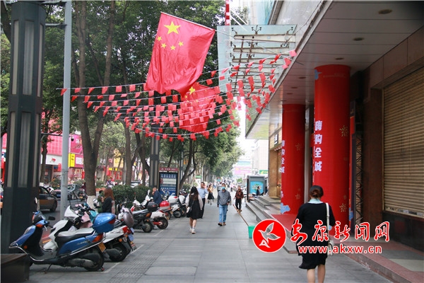 隨著國慶節(jié)的臨近,安康城區(qū)各條街道上一面面國旗已經(jīng)高高懸掛,為新中國成立71周年的到來營造了濃濃的喜慶氛圍。(吳亞君/圖文)aZU安康新聞網(wǎng)