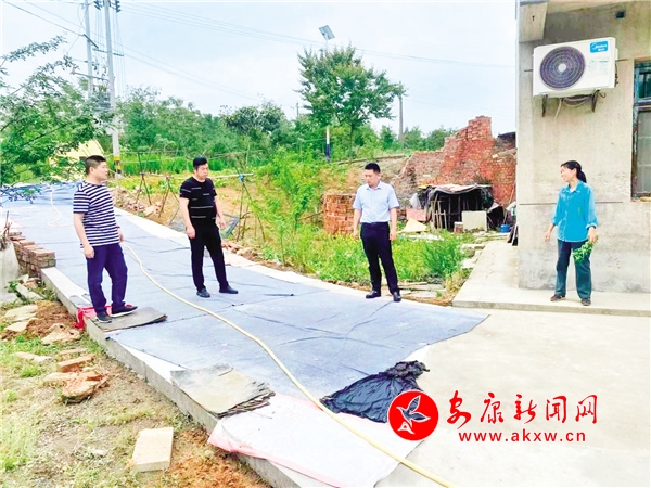 “今天澆水沒?路面有點(diǎn)干呀,這幾天可得勤澆水。”包村領(lǐng)導(dǎo)何啟偉指著剛硬化好的入戶路叮囑道。