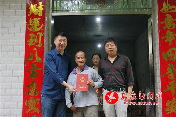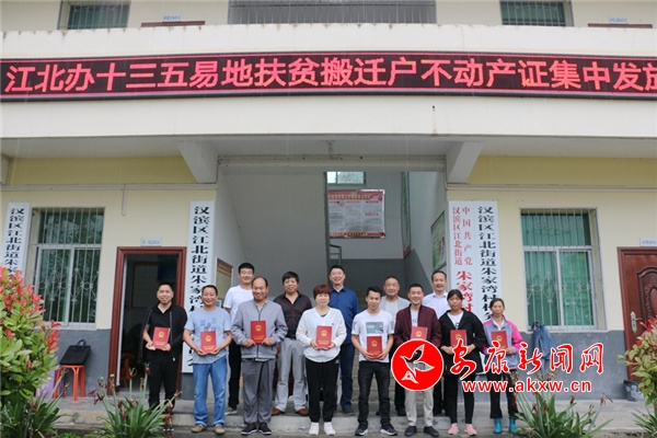 當天,江北街道辦事處工作人員為12戶十三五易地扶貧搬遷貧困戶送去一份大禮——新家的不動產(chǎn)權(quán)證書,自此這12棟房屋有了“身份證”。