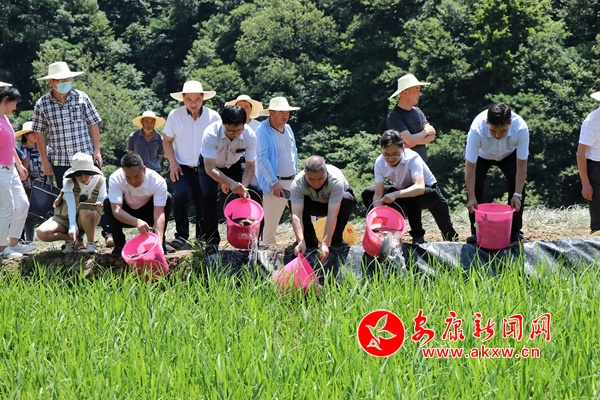 本網(wǎng)訊(通訊員 周濬)“稻在水中長(zhǎng),魚在稻下游。”6月22日,位于安康市漢濱區(qū)北山的大河鎮(zhèn)流芳村,村民在稻田里投放魚苗,一幅秧苗青、魚兒歡的田園畫卷鋪展開來(lái)。