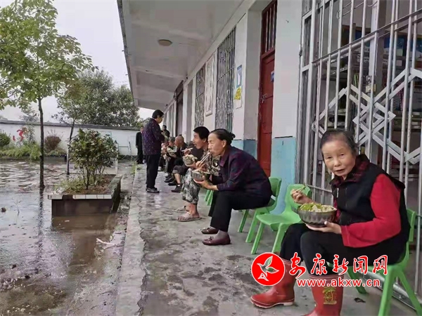 8月29日中午,關(guān)廟鎮(zhèn)唐淌小學(xué)避災(zāi)安置點(diǎn)內(nèi)飄來陣陣香味,原來是鎮(zhèn)村干部、民兵連長(zhǎng)正為轉(zhuǎn)移安置群眾燒菜。只見他們洗菜、切菜、翻炒,不一會(huì)兒,一道道色香味俱全的飯菜上桌了,老人們圍坐在一起,吃了一頓熱騰騰的午飯。“粉條炒肉、紅燒茄子、酸蘿卜炒魔芋、家常豆腐還有西紅柿雞蛋湯,這菜比我家里吃得都好。”唐淌村三組村民唐德枝笑著說道。