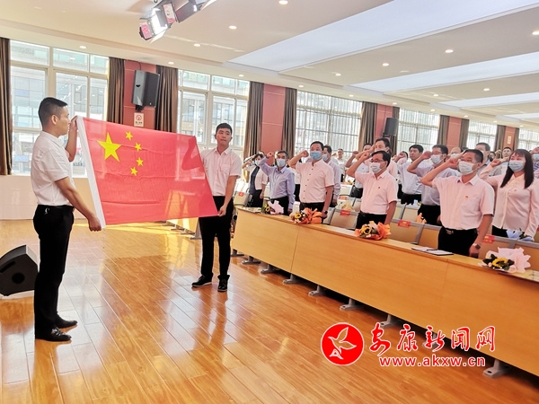 “我志愿成為一名人民教師,忠誠黨的教育事業(yè),遵守教育法律法規(guī),履行教書育人職責(zé)……”活動中,與會教師面向國旗宣誓,用錚錚誓言表達(dá)了“賡續(xù)百年初心,擔(dān)當(dāng)育人使命”的堅定信念。