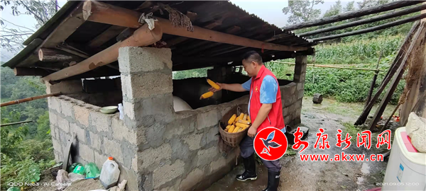 第二天一早,剛剛從防汛重點(diǎn)警示區(qū)完成排查的朱文杰一邊喊著“柯亮,騎上摩托,我們?nèi)ソo唐第禮把豬和雞喂了”,一邊換下早已被雨水打濕的外套,披上一件志愿服背心,勉強(qiáng)抵御陣陣襲來的涼意,撐上那把“外面下暴雨,里面下小雨”的大紅傘,匆匆趕去兌現(xiàn)當(dāng)“飼養(yǎng)員”的承諾。