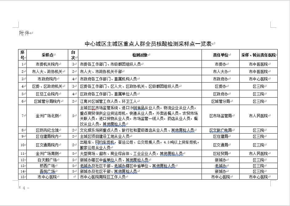 附件:中心城區(qū)主城區(qū)重點(diǎn)人群全員核酸檢測(cè)采樣點(diǎn)一覽表