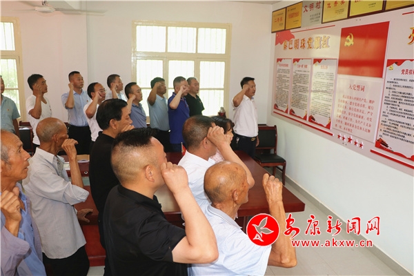“我志愿加入中國(guó)共產(chǎn)黨,擁護(hù)黨的綱領(lǐng),遵守黨的章程……” 面對(duì)鮮紅的黨旗,全體黨員再一次舉起右拳,重溫了一遍入黨誓詞,把“不忘初心、牢記使命”錚錚誓言銘記于心;顒(dòng)中,區(qū)行政審批服務(wù)局派駐興勝村第一書(shū)記汪紀(jì)文組織大家學(xué)習(xí)了黨的十九屆六中全會(huì)精神,村黨支部書(shū)記艾禮彥就學(xué)習(xí)貫徹省十四次黨代會(huì)精神講了一堂專(zhuān)題黨課,對(duì)李開(kāi)軍等5名優(yōu)秀共產(chǎn)黨員進(jìn)行了表彰。會(huì)議要求全體黨員要自覺(jué)加強(qiáng)學(xué)習(xí),以優(yōu)秀黨員為榜樣,發(fā)揮黨員的先鋒模范作用,事事走在前、干在先,勇于擔(dān)當(dāng)作為。加強(qiáng)支部聯(lián)建,互幫互學(xué)互補(bǔ),扎實(shí)做好聯(lián)村幫扶工作,為鄉(xiāng)村振興貢獻(xiàn)力量。
