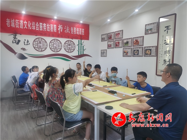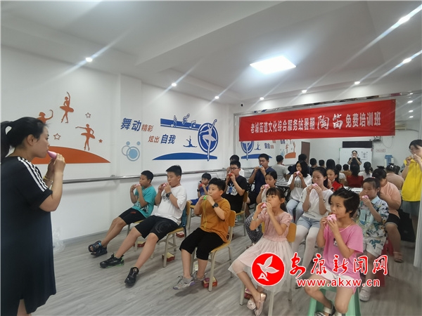 培訓(xùn)班地點(diǎn)設(shè)在老城街道文化文藝培訓(xùn)室和青少年活動基地,本次培訓(xùn)班開設(shè)書法、陶笛兩類課程,通過前期招募、報名,共計25名7周歲以上的青少年兒童參加免費(fèi)培訓(xùn)。本期培訓(xùn)時間從8月8日至8月18日。