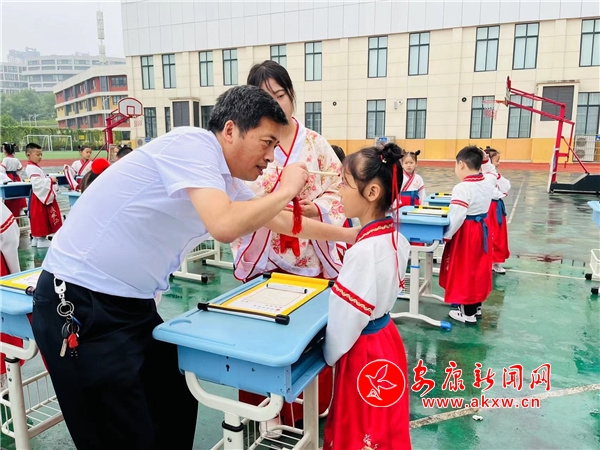 9月16日,安康職業(yè)技術(shù)學(xué)院附屬小學(xué)舉行“喜迎二十大 強(qiáng)國復(fù)興有我”開筆啟智活動。一年級新生身著漢服,通過正衣冠、拜孔子、誦經(jīng)典、點朱啟智、擊鼓鳴志、開筆寫“人”、感恩鞠躬等環(huán)節(jié),領(lǐng)略濃郁的校園文化氛圍和優(yōu)秀傳統(tǒng)文化的魅力,莊重的儀式在學(xué)生內(nèi)心種下愛學(xué)習(xí)、敬師長的種子,助力孩子走好學(xué)習(xí)第一步。(圖文/甘立)z4k安康新聞網(wǎng)