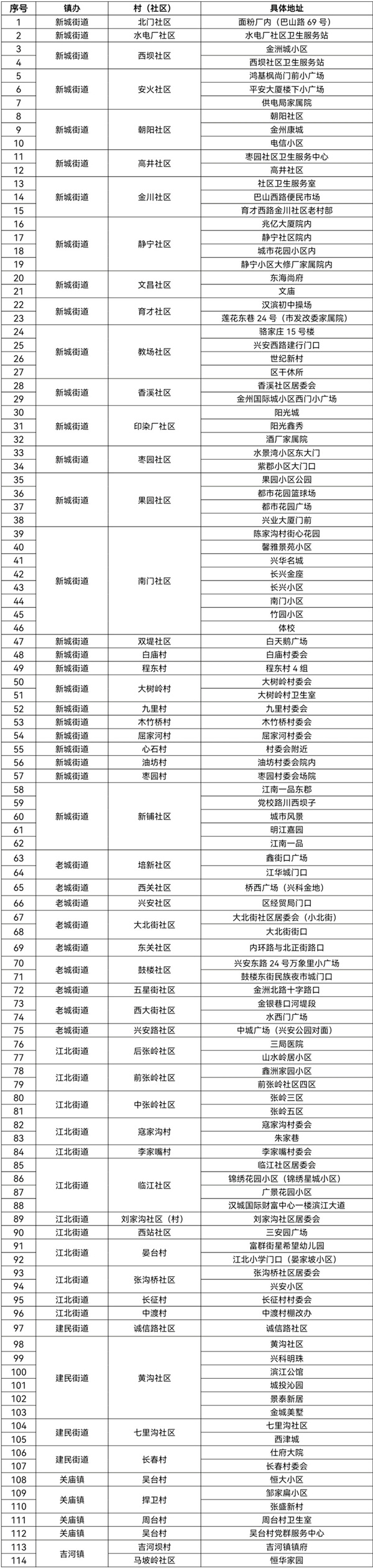 附件:漢濱區(qū)中心城區(qū)全員核酸檢測采樣點(diǎn)一覽表