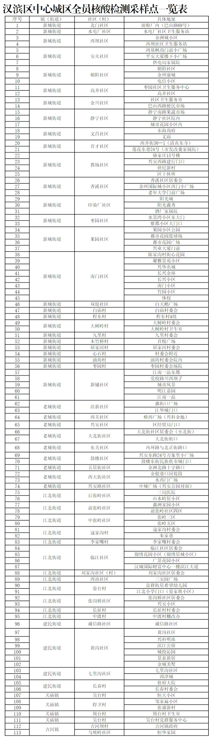 漢濱區(qū)老城街道、建民街道、新城街道、江北街道及關(guān)廟鎮(zhèn)、吉河鎮(zhèn)中心城區(qū)范圍(具體見附件所列村、社區(qū))常住和流動人員一律參加核酸檢測。
