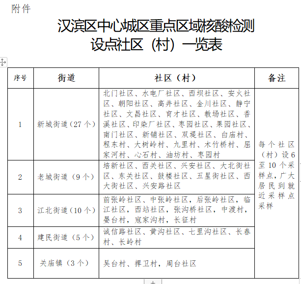 附件:漢濱區(qū)中心城區(qū)重點(diǎn)區(qū)域核酸檢測(cè)設(shè)點(diǎn)社區(qū)(村)一覽表