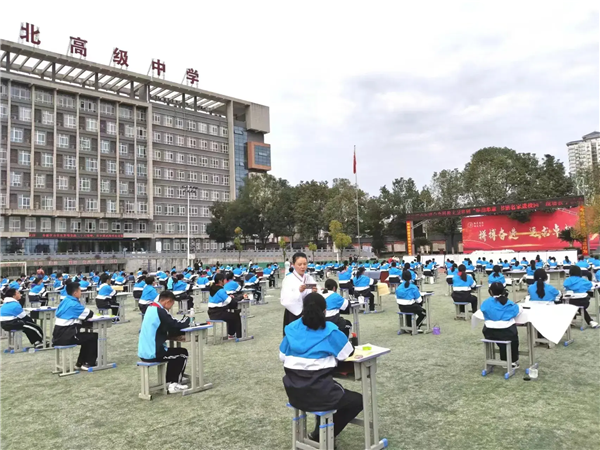 11月8日15時,漢濱區(qū)江北高級中學廣場內,身著校服和漢服的師生、社會各界別人士、安康書法家和中省市新聞媒體近500多人,懷著驚奇和喜悅的心情,踴躍參加由漢濱區(qū)青年聯(lián)合會科教文衛(wèi)界別舉辦發(fā)起的發(fā)揚中華傳統(tǒng)文化“墨韻華章 書法名家進校園”活動。