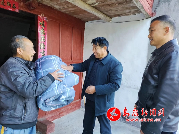 進(jìn)入冬季后,山區(qū)群眾用火用電安全一直牽動(dòng)著鎮(zhèn)村干部的心,為了確保廣大群眾安全過(guò)冬,連日來(lái),興勝村“四支隊(duì)伍”利用走訪排查的有利時(shí)機(jī),深入到組到戶了解群眾的生活情況,并積極向廣大群眾宣傳冬季用火用電安全注意事項(xiàng),把黨和政府的關(guān)愛(ài)送到群眾的心坎上。在14組特困供養(yǎng)人員李富舉的家里,村干部為他送上了一床新的棉被,仔細(xì)詢問(wèn)老人近期的身體生活情況,并反復(fù)交代有關(guān)用火用電安全事項(xiàng),濃濃的關(guān)愛(ài)讓老人感動(dòng)不已。