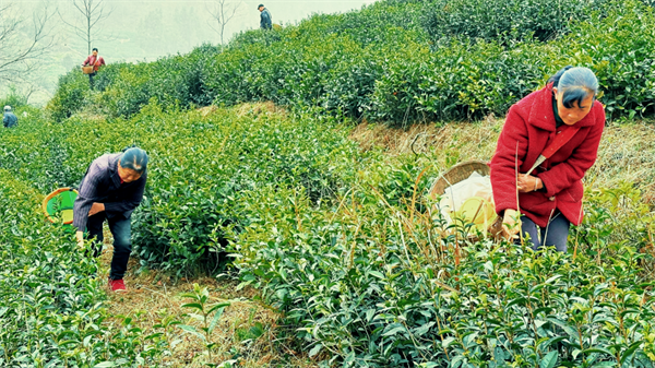 走進(jìn)晏壩鎮(zhèn)山川秀美農(nóng)業(yè)有限公司的核心園區(qū),青山如黛,云霧繚繞,蔥蘢茶樹,綠意重疊,辛勤勞作的農(nóng)人們點(diǎn)綴在茶壟之間,或修剪除草、或淺耕施肥,繪就了一幅幅生機(jī)盎然的春日田園圖。