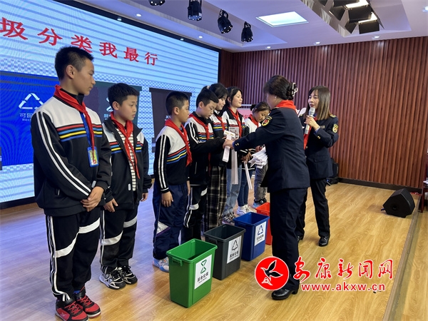 課堂上,城管執(zhí)法人員王雪通過圖文講解、知識問答等方式,用通俗易懂的語言、生動活潑的形式,向?qū)W生們講述了垃圾分類的重要意義、如何正確分類投放垃圾等知識。