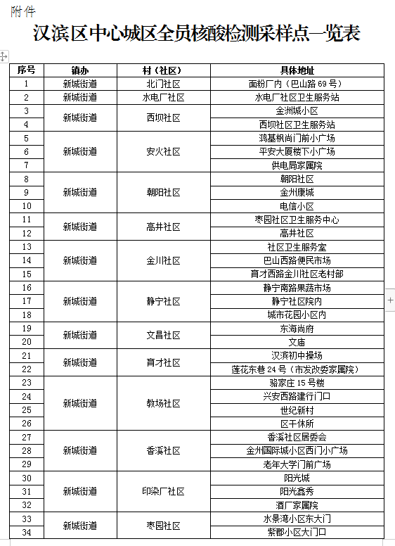 附件:漢濱區(qū)中心城區(qū)全員核酸檢測采樣點一覽表