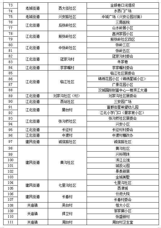 漢濱區(qū)老城街道、建民街道、新城街道、江北街道及關廟鎮(zhèn)、吉河鎮(zhèn)中心城區(qū)范圍(具體見附件所列村、社區(qū))常住和流動人員一律參加核酸檢測。