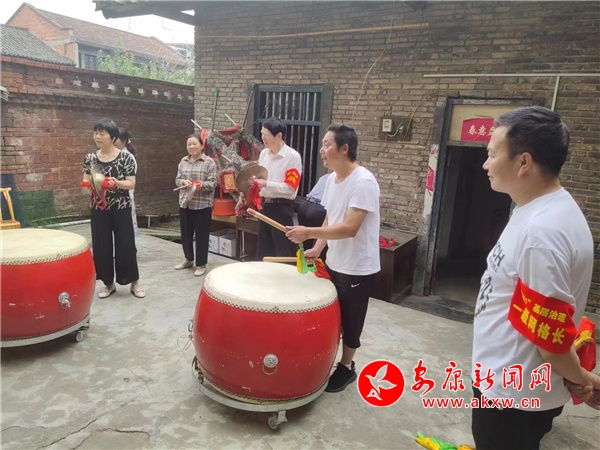 “咚咚鏘,咚咚鏘,咚鏘,咚鏘,咚咚鏘……”晚飯后,在五里文體中心廣場,跟著老鼓手的敲打節(jié)奏,建立不久的五里社區(qū)鑼鼓隊(duì)正熱火朝天地練習(xí)。“空……