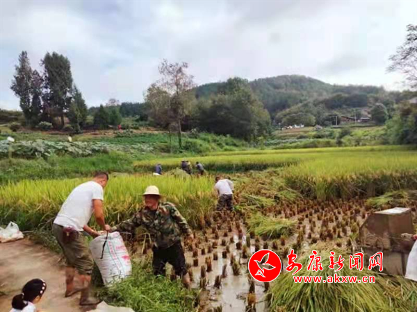流水鎮(zhèn)恢復(fù)生產(chǎn)收稻