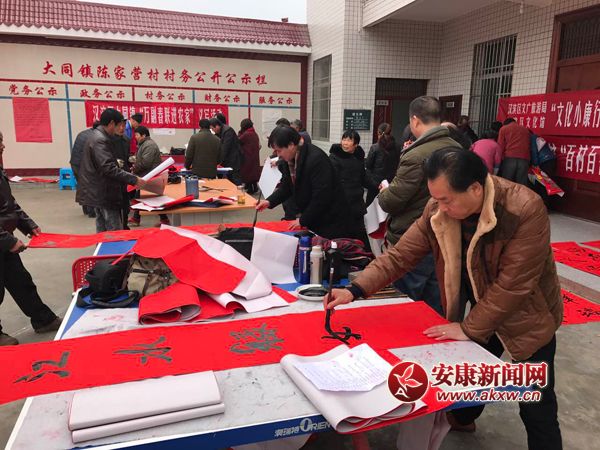 安康新聞網(wǎng)訊(通訊員 劉瀟 楊峰)1月8日,大同鎮(zhèn)陳家營村熱鬧非凡。2017年“萬副春聯(lián)進(jìn)農(nóng)家”活動(dòng)在這里舉行,在寒冬臘月里為全鎮(zhèn)人民帶來了濃濃暖意。春聯(lián)書寫……